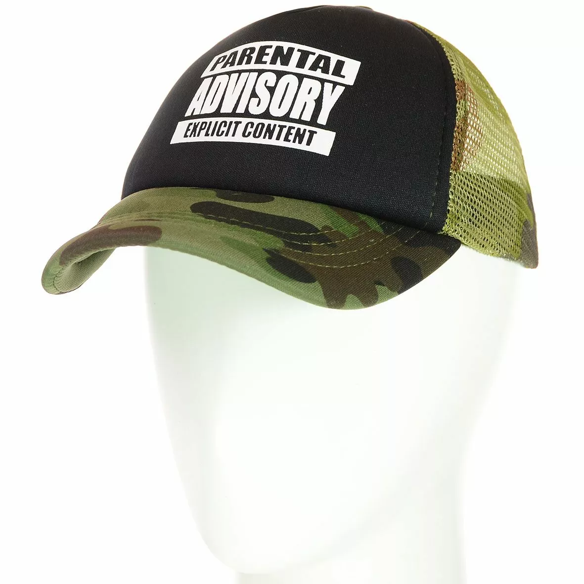 Стильная кепка-тракер с надписью на передней панели «Parental Advisory». Задняя часть изделия выполнена сеткой для лучшей воздухопроницаемости, так же сзади имеется застежка, которая регулирует размер и надежно фиксирует кепку на голове. Оригинально и неотразимо смотрится как на парнях, так и на девушках. Возможно нанесение вашего логотипа на лицевую часть кепки.
