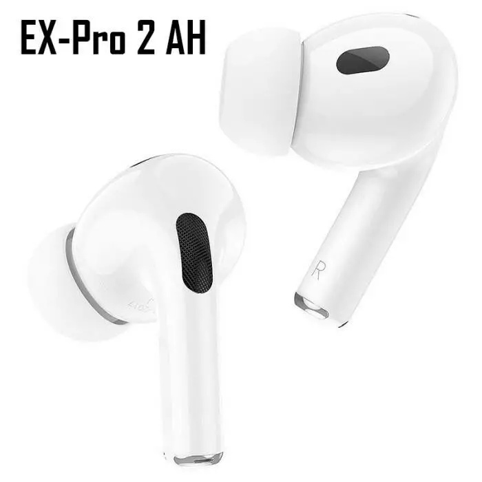 Бездротові навушники EX-Pro 2 AH - Навушники стали швидшими та енергоефективнішими, завдяки чому збільшився час роботи. Якість звуку покращилася завдяки новим аудіодрайверам. У комплект входить 4 пари амбушур, включно з новим розміром XS для невеликих вух. Корпус доповнено петлею для ремінця для зручності транспортування. Навушники мають стильний дизайн і зручну ергономіку. Вони оснащені мікрофоном для чіткого передавання голосу та кнопкою для приймання викликів. Якісні динаміки забезпечують потужне та чисте звучання, а корпус виготовлено з міцного глянцевого пластику.