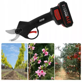 Відкрийте для себе новий рівень зручності садівництва з бездротовим електричним секатором – професійним інструментом, розробленим для плавного та чистого зрізання з мінімальними зусиллями. Живлення від високопродуктивного літієвого акумулятора забезпечує гнучкість та свободу для обрізки виноградних лоз, фруктових дерев, чагарників та іншого з абсолютною точністю. Цей секатор, ідеальний як для професіоналів, так і для любителів садівництва, робить роботу у дворі безпечнішою, швидшою та легшою.