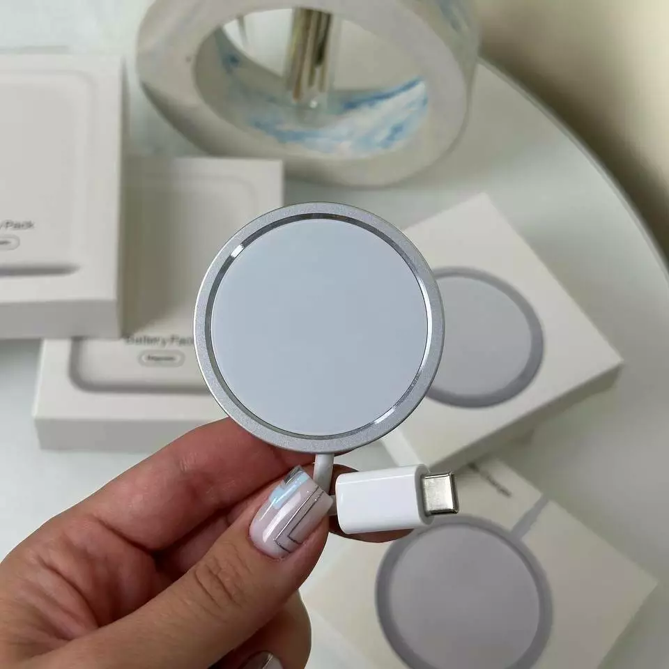 Бездротовий зарядний пристрій MagSafe - Це інноваційне рішення для швидкої та безпечної зарядки вашого телефону та інших пристроїв, що підтримують стандарт Qi. Він поєднує в собі сучасний дизайн, передові технології та зручність використання, що робить його ідеальним вибором для тих, хто шукає простий і ефективний спосіб підзарядки своїх гаджетів. Зарядний пристрій MagSafe забезпечує зручну бездротову зарядку. Вбудовані магніти надійно кріплять зарядний пристрій на задній панелі Вашого телефону, гарантуючи їх ідеально точну сумісність, тому зарядка виконується максимально швидко з потужністю до 15 Вт.