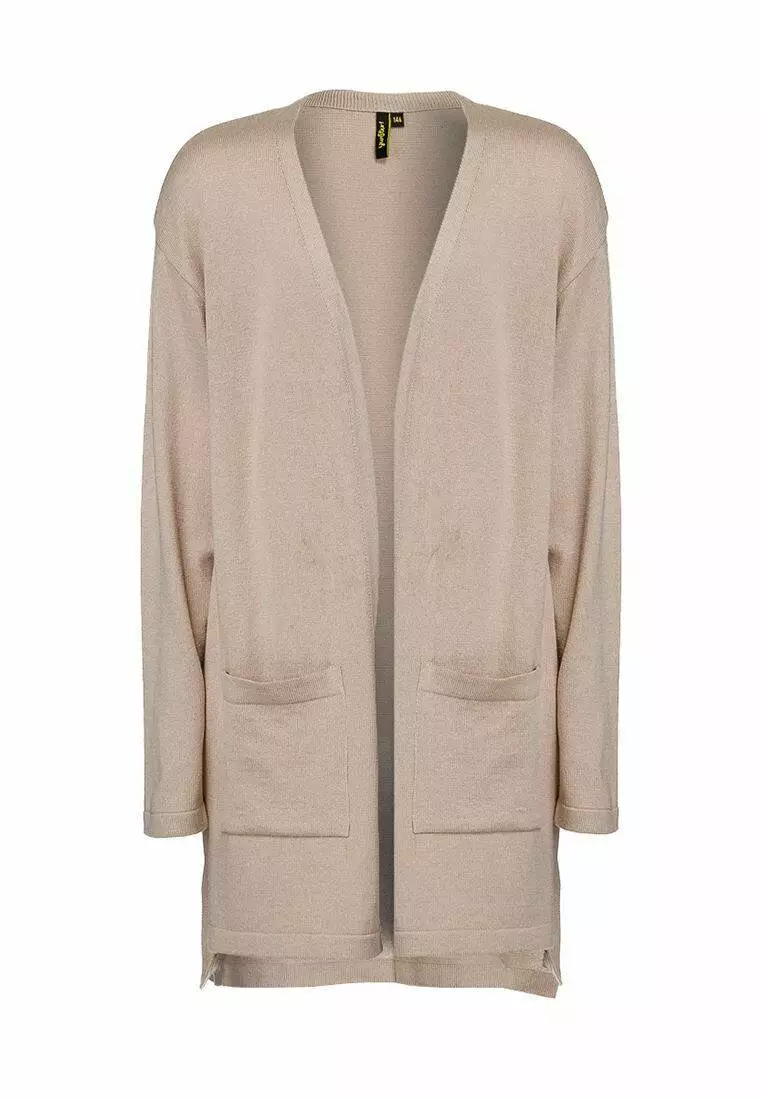 Деталі: Кофта (кардиган) бежевого кольору. Вільний крій. Понижена лінія плеч. Накподібладні кармани. V-подібна горловина.