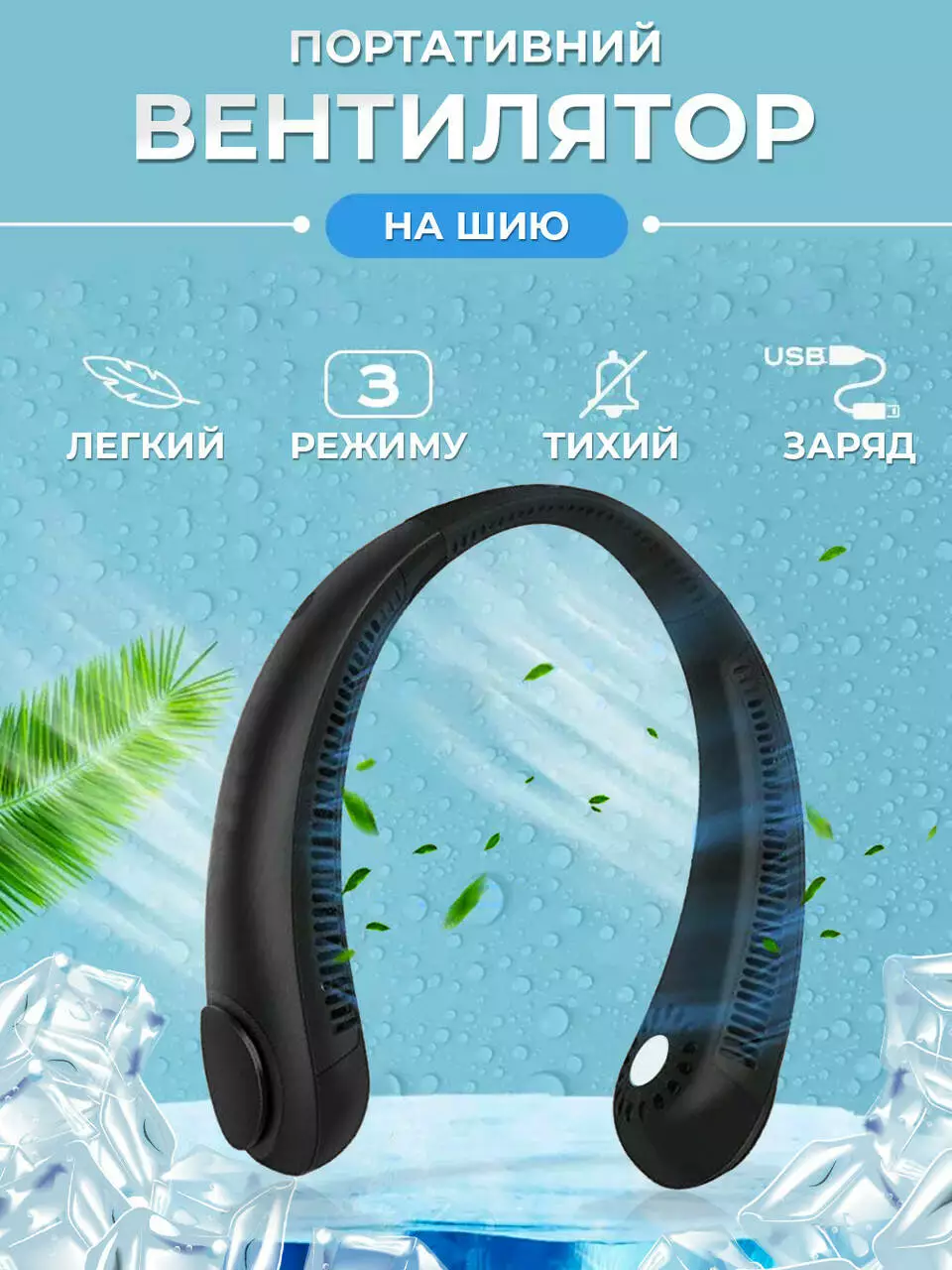 надевается на шею, обеспечивая прохладу и свежесть в любой