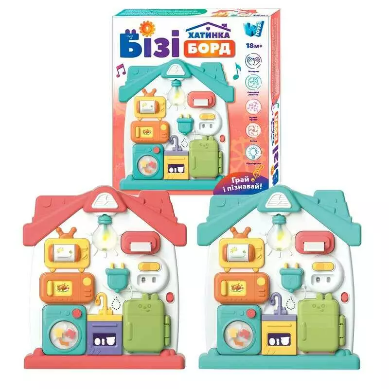 Бізіборд 68307 (24) "WToys", 2 кольори, ОЗВУЧУВАННЯ УКРАЇНСЬКОЮ МОВОЮ, 3 казки, 3 пісні, звуки, підсвічування, віршики, пальчикові ігри, в коробці