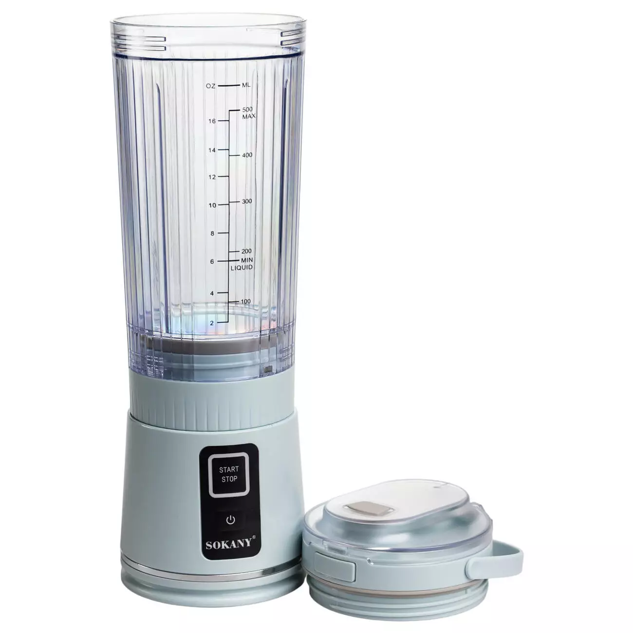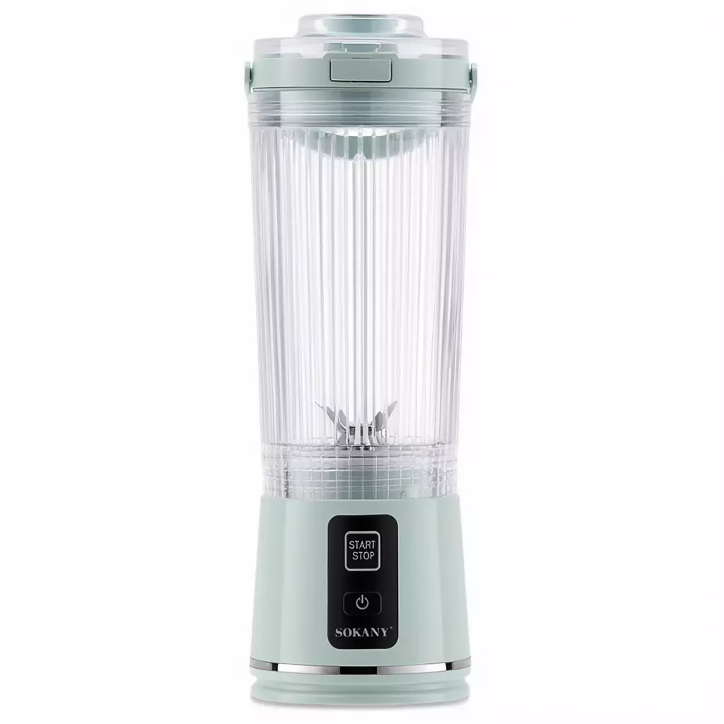 Блендер-шейкер портативний 2-в-1 Sokany SK-01023 для коктейлів 500 мл з USB-зарядкою, м'ятний