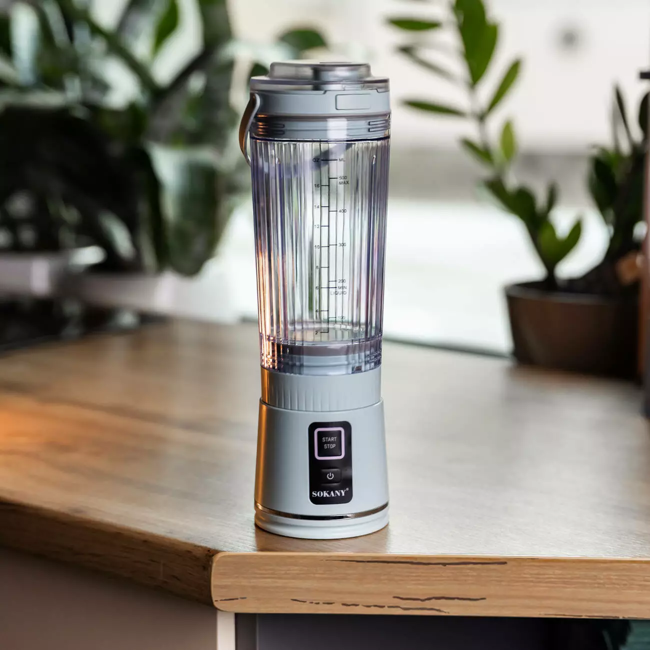 Портативний блендер-шейкер Sokany SK-01023 формату 2-в-1 призначений для приготування напоїв у мобільних умовах. Чаша об’ємом 500 мл підходить для приготування однієї порції без переливання. Компактні розміри та пластиковий корпус зменшують вагу пристрою та спрощують транспортування.