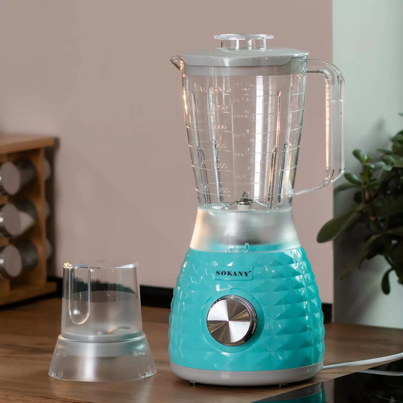 Блендер Sokany SK-03030 — це зручний і стильний пристрій, що допоможе вам готувати різноманітні страви швидко та легко. Бірюзовий дизайн надає йому сучасного вигляду, що вдало доповнить будь-яку кухню. Блендер оснащений чашею на 1,5 літра, що ідеально підходить для приготування соків, смузі, соусів та інших страв на велику сім'ю чи гостей.