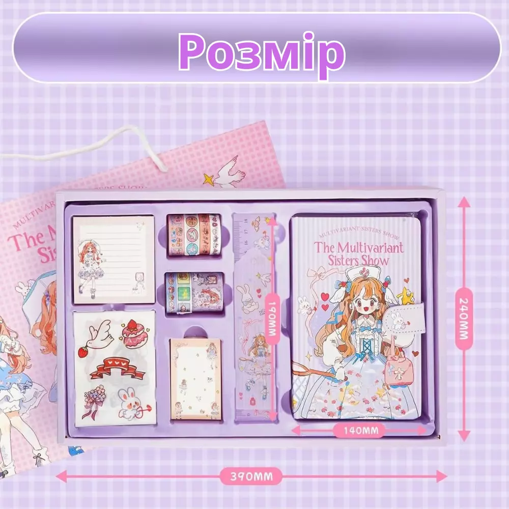 вести особисті записи. У набір входить барвистий блокнот у стилі