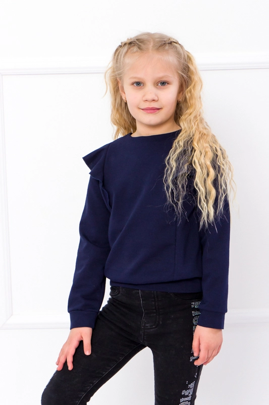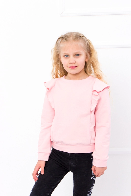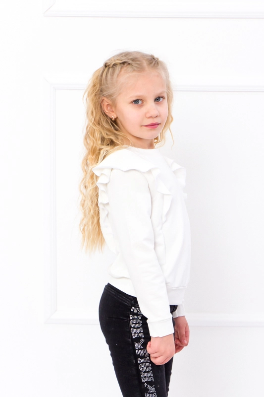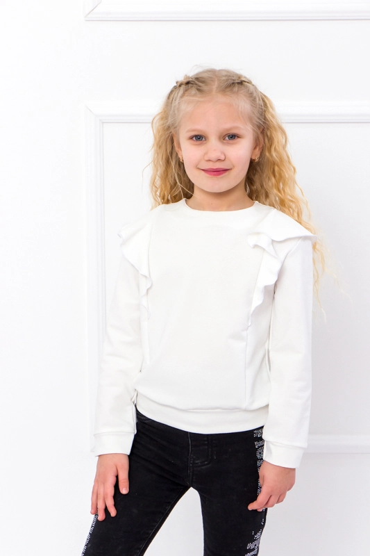 Прагните створити гармонійний гардероб для своєї юної модниці, в якому буде місце як базовим, так і ошатним, оригінальним моделям? Відмінним варіантом, який поєднує в собі нотки як повсякденного, так і святкового стилю, стане кофта від популярної торгової марки «Трикотажний Край». Милий дизайн зачарує як саму дівчинку, так і всіх оточуючих. Крій моделі лаконічний, але має кілька примітних особливостей. Рельєфні шви доповнені завзятими рюшами, що додають образу ще більше кокетства і чарівності. Серед елементів, які створюють зручність, комфорт і свободу рухів, слід виділити прямі довгі рукава з манжетами, оптимальний виріз горловини застібається на маленький, акуратний гудзик. Універсальний і вільний крій дозволяє поєднувати її як зі спідницею, так і з джинсами або шортами. Вона відмінно підійде для теплої весни або осені, а також для прохолодних літніх днів.