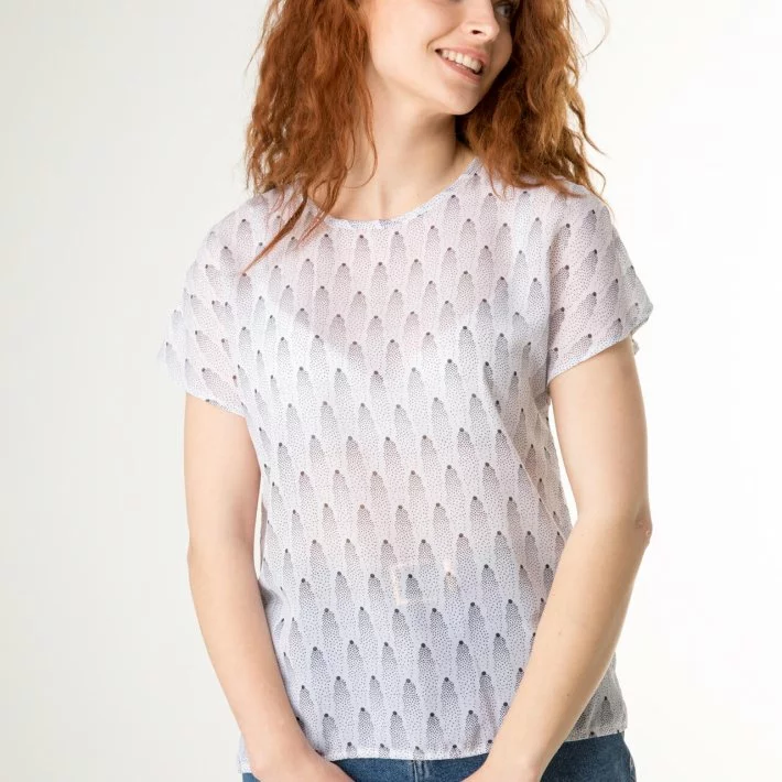 Легка блуза-футболка з модного в цьому сезоні шифону - принт. Без