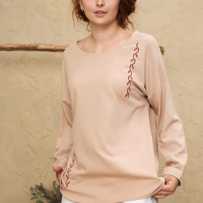 Блузка з льону без застібок, зі спущеною лінією плеча, оверсайз
