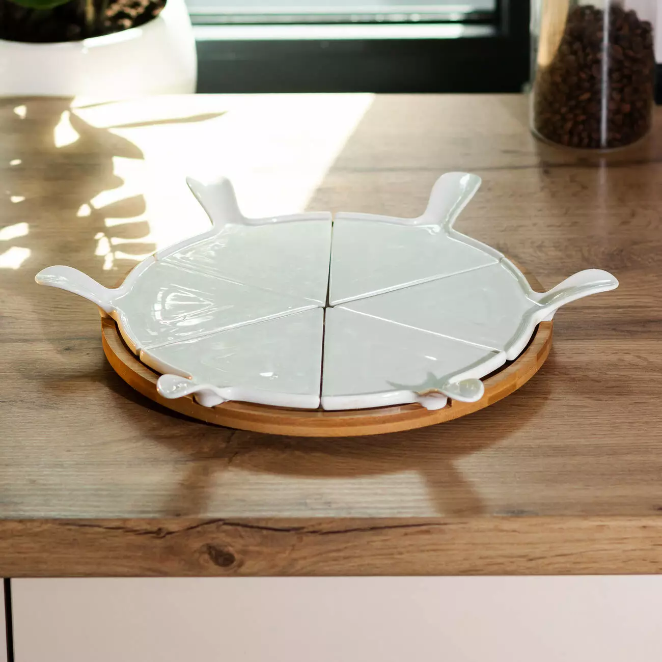 заходів. Блюдо має бамбукову підставку, що обертається, порцелянова