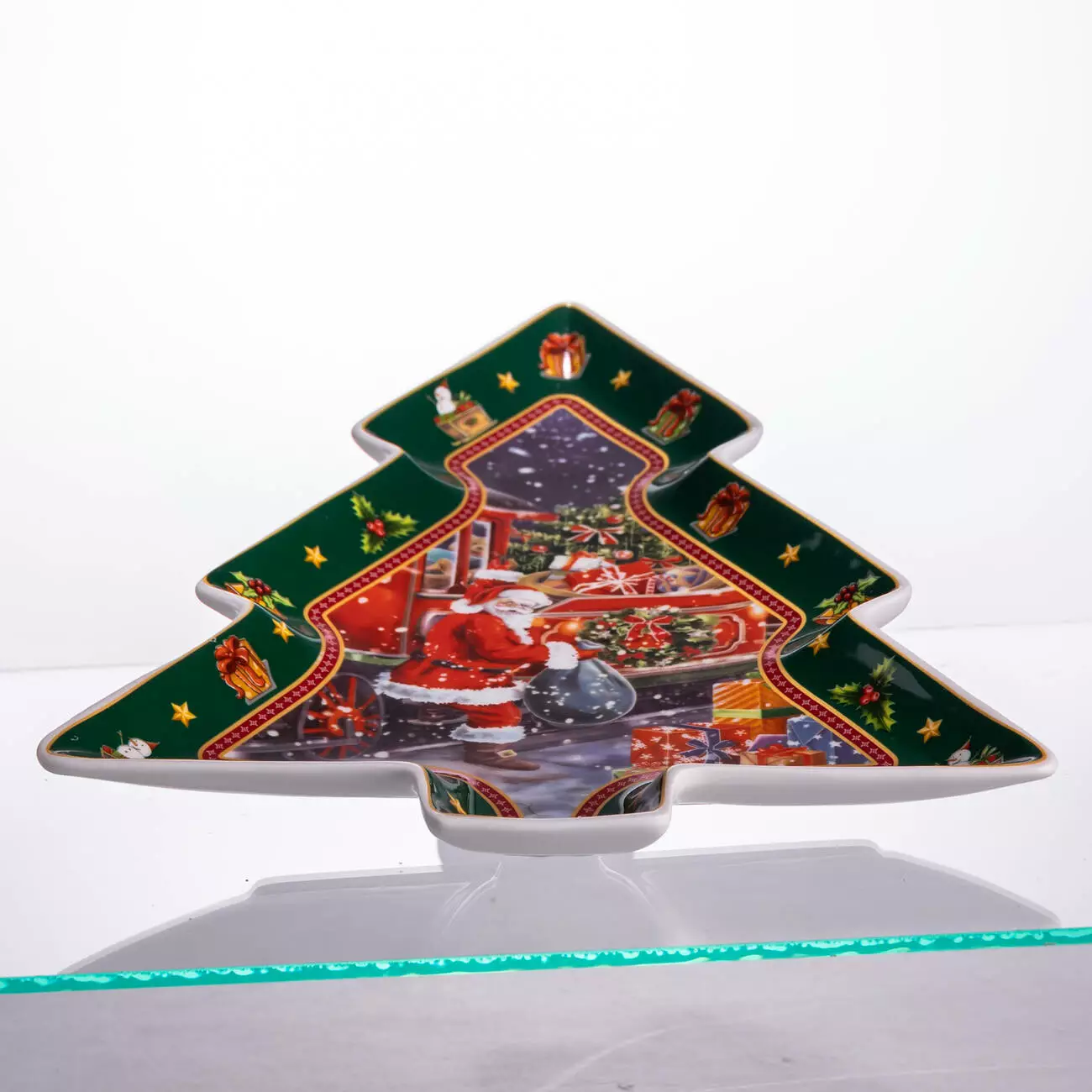 Це велике сервірувальне блюдо створене, щоб стати яскравим і незабутнім центральним елементом новорічного та різдвяного сервірування. Завдяки оригінальній формі ялинки та святковому малюнку, воно миттєво створить атмосферу казки.
