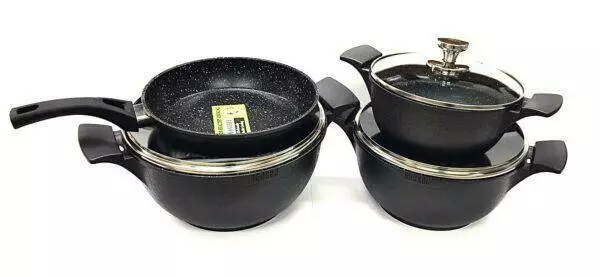 BN-346 (2)-Набір каструль 7 пр 2,5 л; 4,5 л; 6,5 л; сковорода 24 см Мармурове покриття коричневе