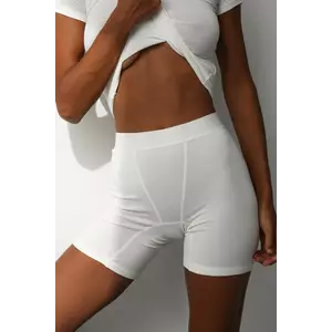 Завдяки природним властивостям модалу, боксери зберігають свою форму і колір навіть після безлічі прань, залишаючись такими ж м'якими і приємними на дотик, як у перший день носіння. Жіночі боксери у молочному кольорі – це стильний вибір для повсякденного комфорту, який підкреслить вашу природну красу та забезпечить легкість на кожен день.