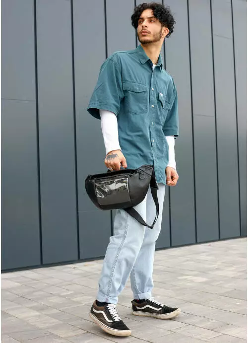 • Функциональность: снаружи спереди сумки карман из сетки. Внутри сумки кроме основного отделения есть два открытых кармана, один большой карман на молнии, в котором три открытых отделения. Снаружи на спинке сумки два открытых кармана, куда легко поместится телефон и другие мелочи. Стандартный обхват (сумка с ремнем) составляет от 86 см до 168 см: длина регулируется. При заказе в комментарии укажите необходимую длину ремня, если она отличается от стандартной.