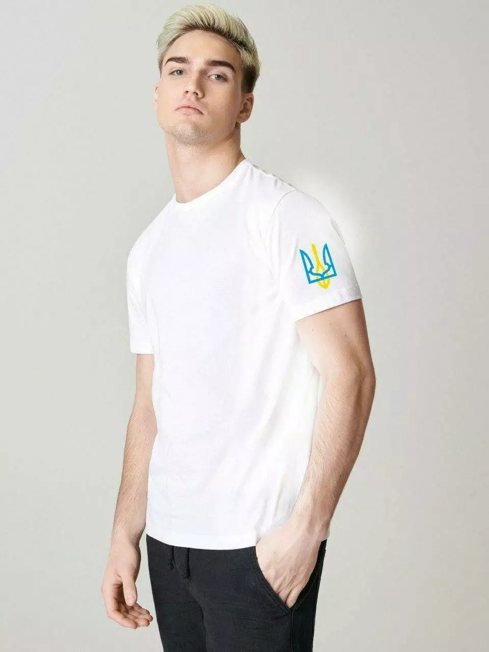 Однотонна чоловіча футболка класичного крою з патріотичним принтом, виконана з бавовни з додаванням еластану. М’який, еластичний матеріал приємний до тіла, добре пропускає повітря та зберігає колір. Обирай свій принт та демонструй любов до України у повсякденних образах. Якісний принт стійкий до зношування та зберігає яскравість за умови дотримання рекомендацій по догляду.