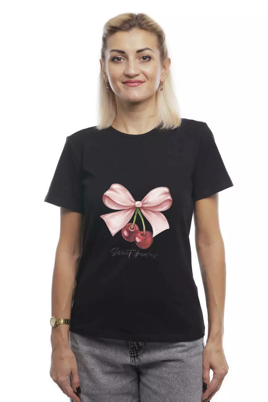 Bono Футболка жіноча прямого крою 950101 чорна принт вишні