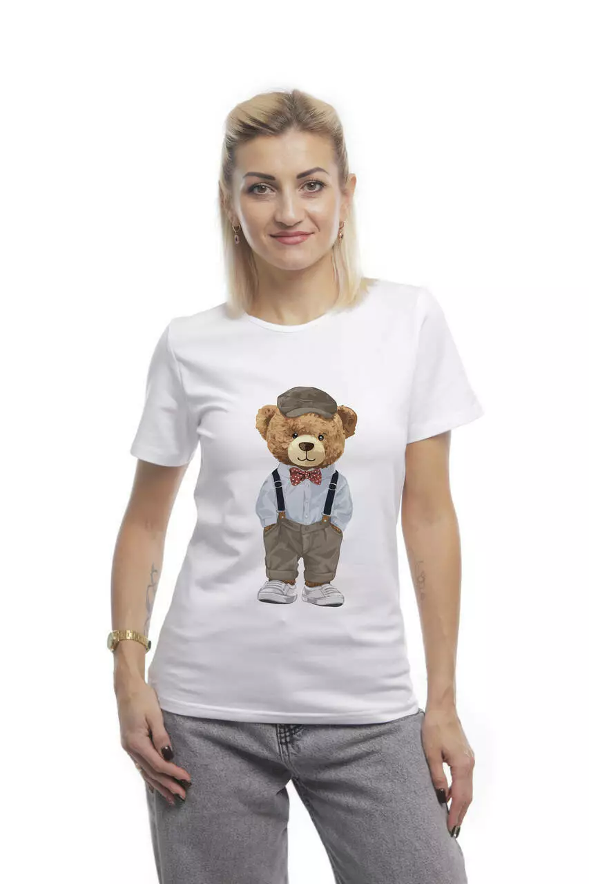 Bono Футболка жіноча прямого крою 950102 колір білий принт ведмедик