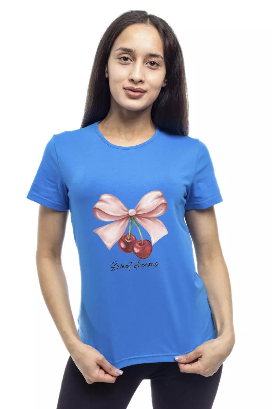 Bono Футболка жіноча прямого крою 950127 синя принт вишні