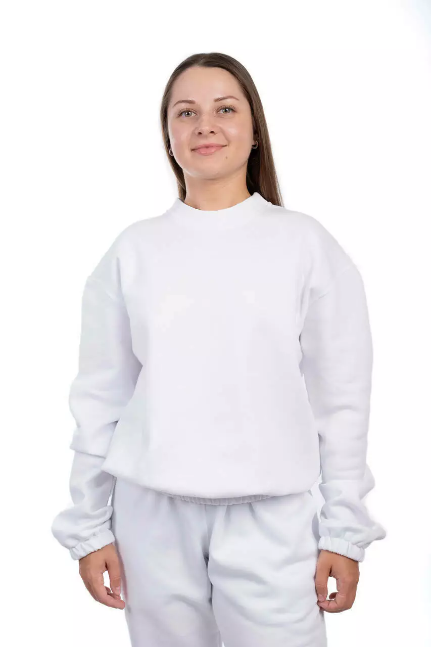 Білий колір надасть образу свіжості та легко поєднуватиметься з базовим гардеробом. Світшот оверсайз крою з еластичною горловиною, манжетами та поясом для зручності. Виготовлений з бавовняного трикотажу з флісовим начосом зсередини. Тканина пропускає повітря, вбирає вологу та зберігає тепло. Ідеальний вибір для міжсезоння та прохолодних днів.