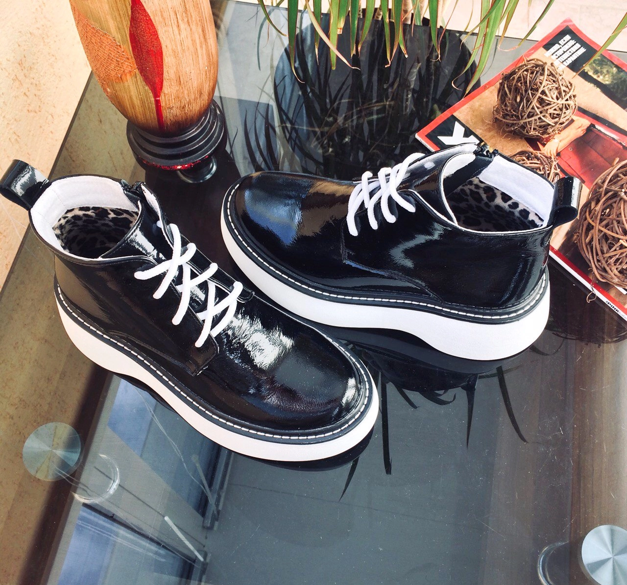 Ботинок чёрный лаковый
