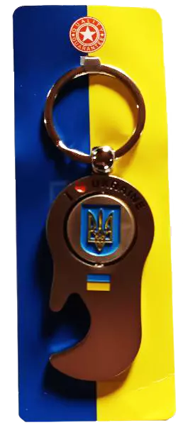 Брелок с открывалкой, украшенный гербом Украины, является