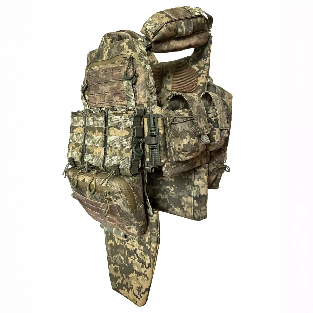 Тактичний комплект включає бронеплити сертифікованого 6-го класу захисту (кераміка + поліетилен), що витримують попадання бронебійного патрона 7,62×54 АРІ, та м’які пакети 1 класу, які відповідають ДСТУ 4103-2002, ДСТУ 8782:2018 і NIJ 0101.06 (9×18 мм, 9×19 мм).