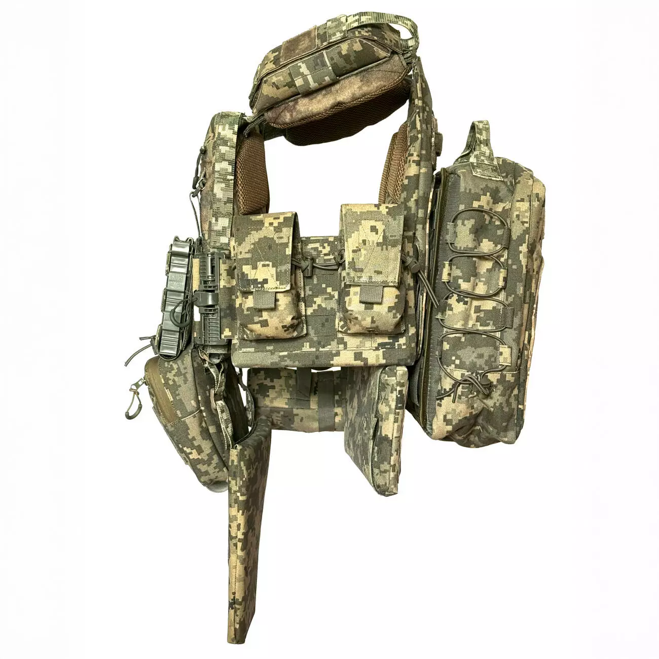 Плитоноска M-WIN GEN.2 — це основа даного тактичного комплекту. Вона розроблена спільно з українськими спецпризначенцями, має передні та задні панелі з тканини Cordura 1000D Squadron, а також продуману конструкцію для зручного носіння і швидкого доступу до екіпіровки.