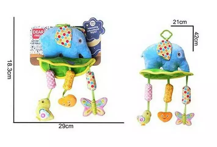 Брязкальце 688 M41 (96) “Слоник”, текстильне, кріплення для підвішування, пискавка, шелесткі елементи, мелодія вітру, в пакеті