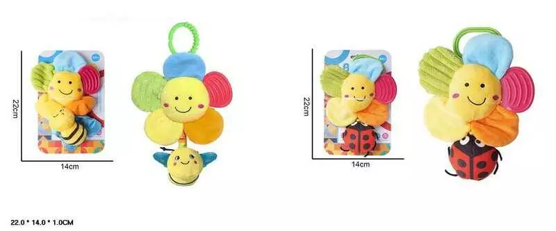 Брязкальце 7622 B-38 A/B (96/2) 2 види, “Квітка”, заводний механізм, вібрація, шелесткі елементи, прорізувач, кріплення для підвішування, на листі