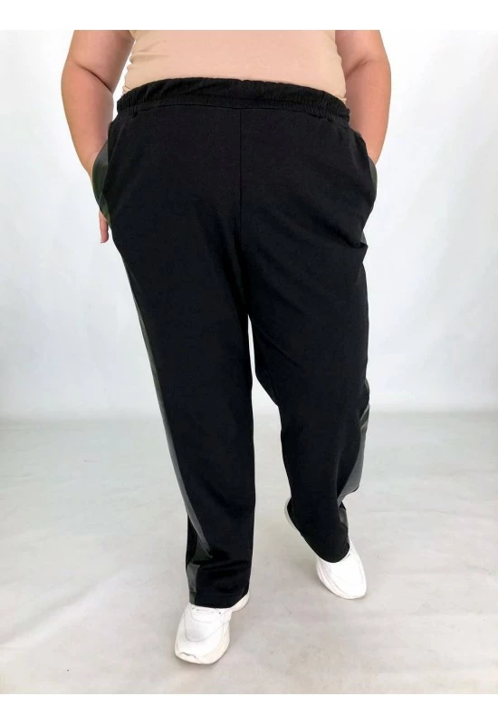 Штани з мікродайвінгу з начісуванням і шкіряним лампасом. Хороша розтяжимість, не кашлатяться. Пояс на резинці з кишенями.