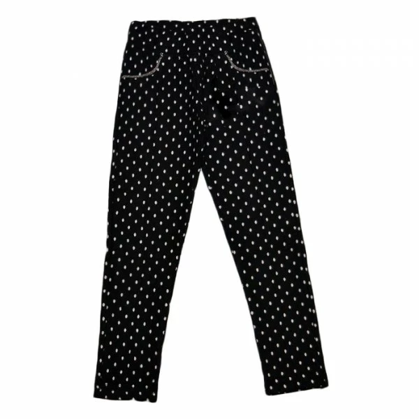 Длинные и достаточно теплые штаны-леггинсы отлично подойдут для холодного времени года. Они хорошо растягиваются, благодаря чему под низ можно надеть еще теплые колготы и зделать зимнюю или осеннюю прогулку еще более комфортной. Образ для девочки станет веселым и игривым благодаря принту - горошек. Несмотря на то, что брюки выполнены в классической черно-белой цветовой гамме, они выглядят достаточно свежо и не официально, поэтому прекрасно будут смотреться как со спортивной футболкой и кофтой-кенгурушкой, так и с обьемным свитером и кардиганом.