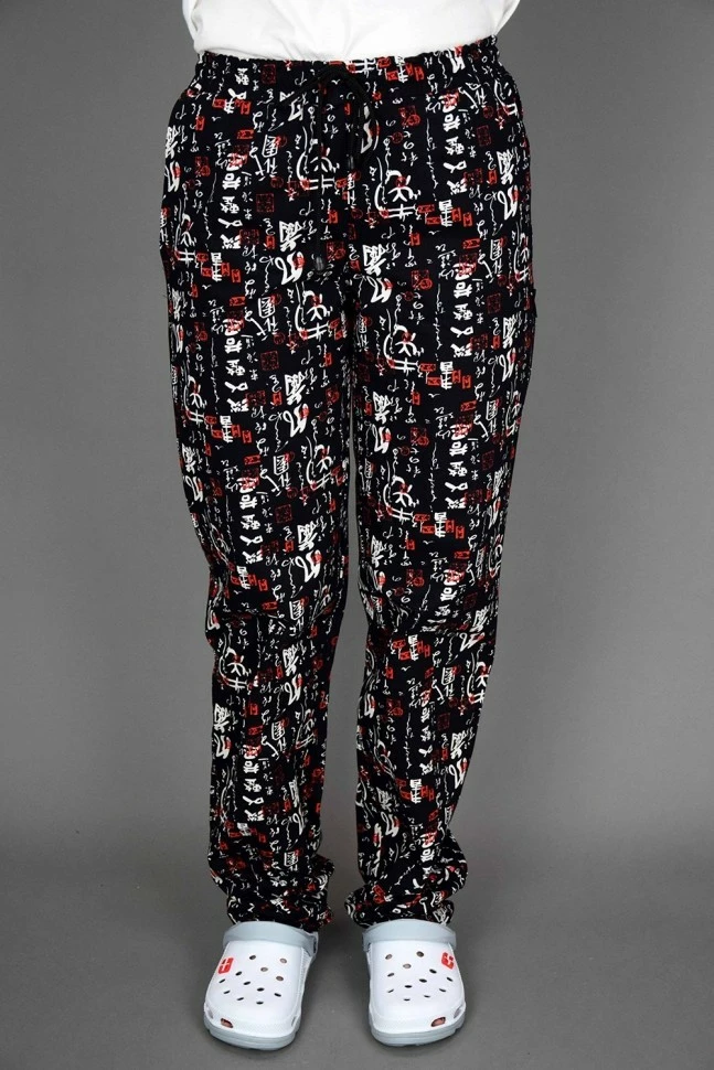 Поварские брюки с принтом Иероглефы на чёрном фоне