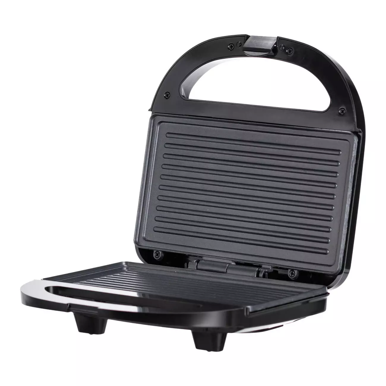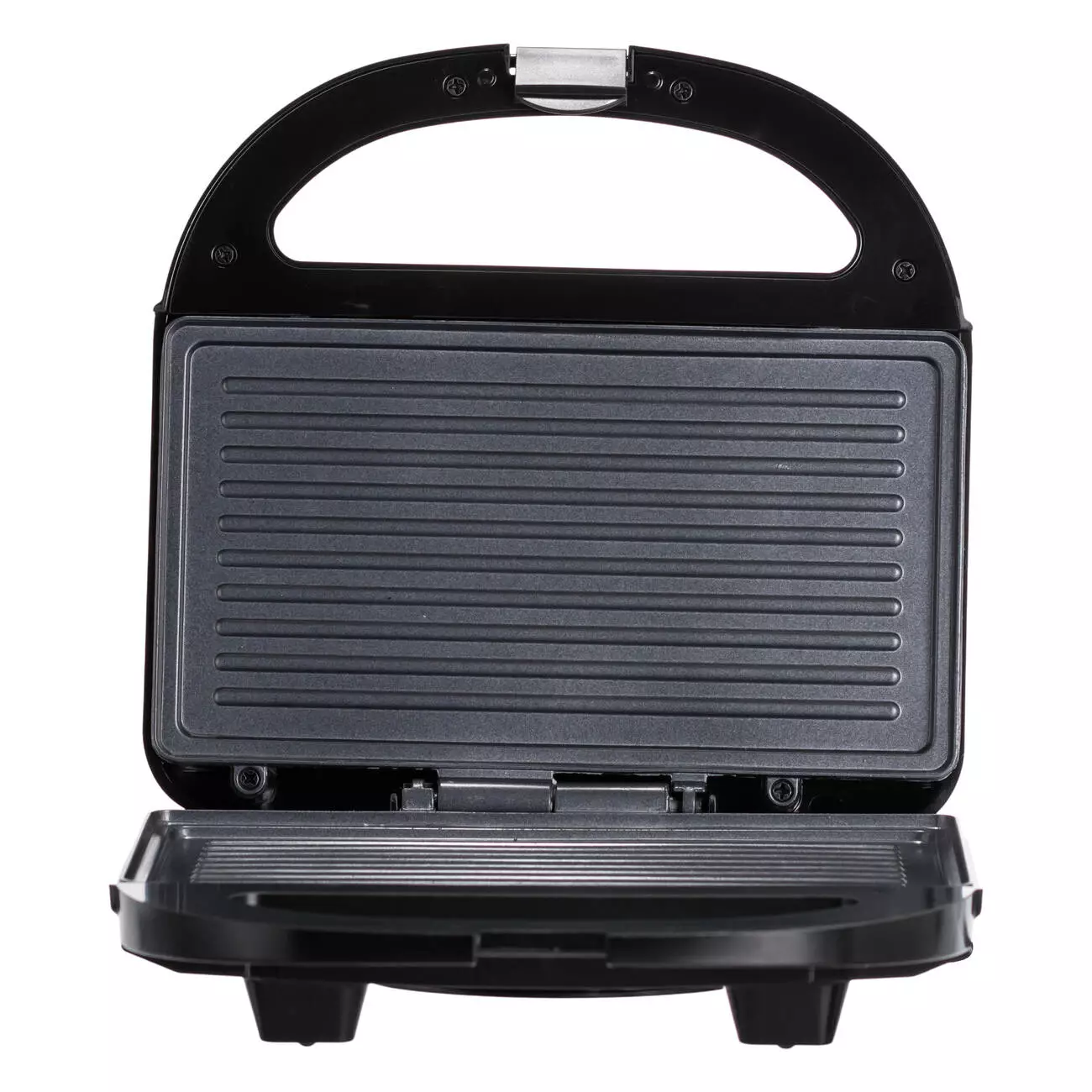 Бутербродниця оснащена пластинами з антипригарним покриттям, що запобігає прилипанню продуктів до поверхні та полегшує очищення після використання. Нижня частина приладу має кріплення для намотування шнура.