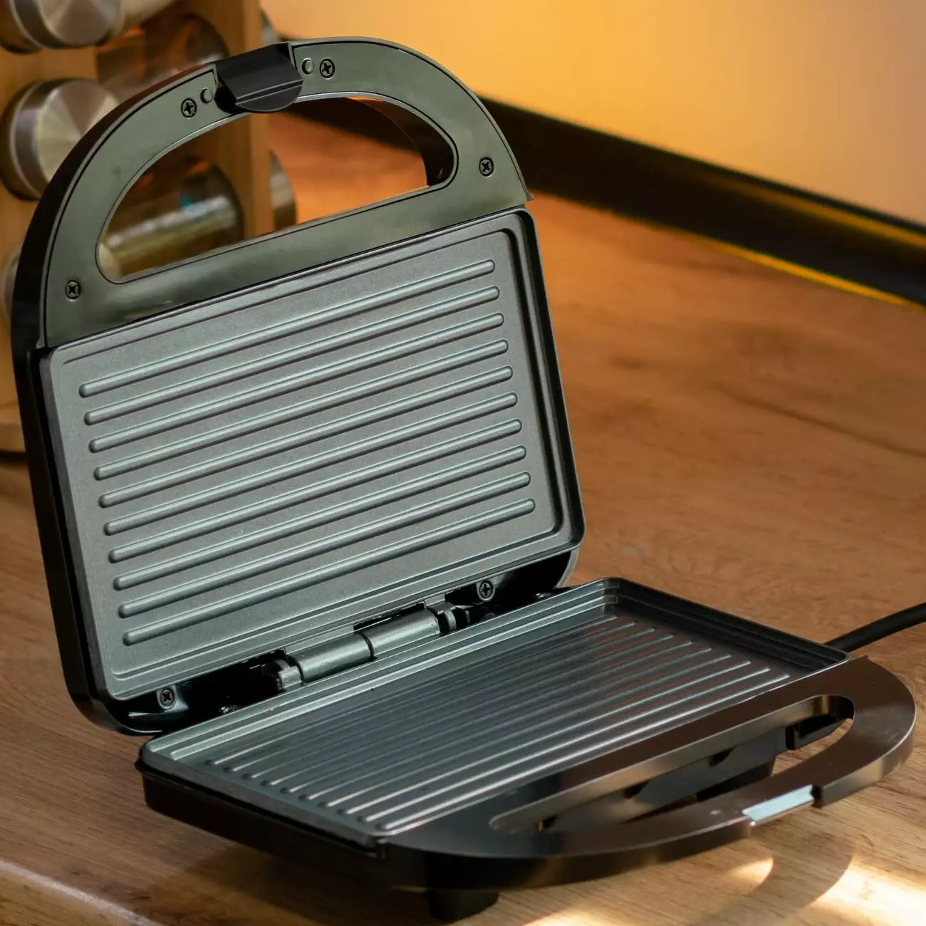 Бутербродниця SOKANY SK-08073 - вдалий вибір для швидких та ситних сніданків. Пристрій дозволяє швидко приготувати хрумкі соковиті бутерброди з різними начинками, а двостороннє нагрівання пластин мінімізує час на готування і забезпечує рум'яну скоринку. Крім бутербродів, її можна використовувати як домашній гриль для овочів, риби чи курки.