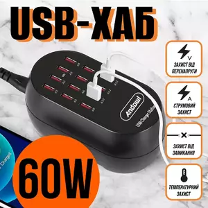 USB-хаб зарядная станция 12 USB портов Andowl Fust Charger — идеальное решение для быстрой и безопасной зарядки всех ваших устройств одновременно! Данный универсальный USB-концентратор предлагает множество преимуществ, делая его незаменимым для дома, офиса, путешествий, etc.