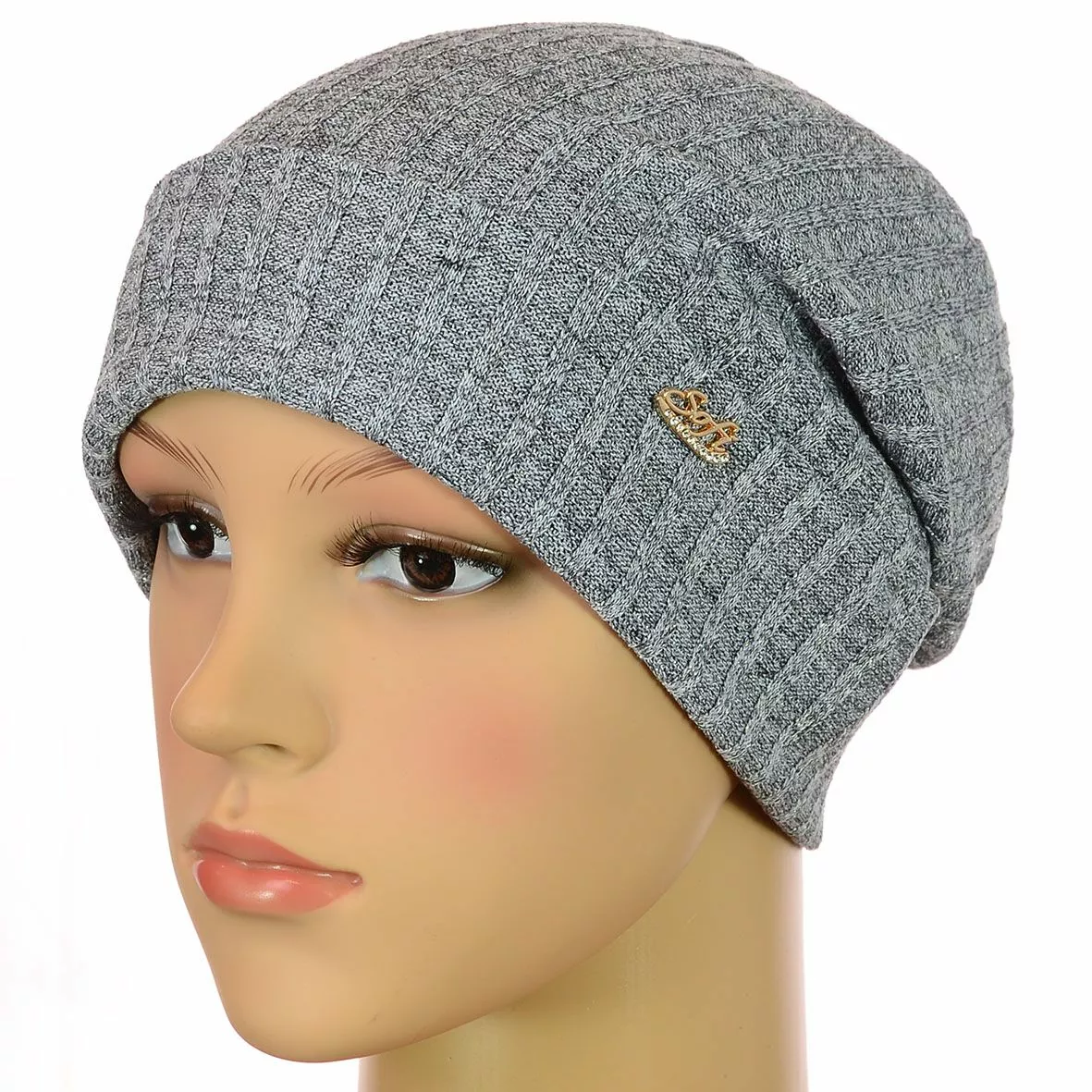 Двухслойная трикотажная шапка с отворотом и закрепом сзади,