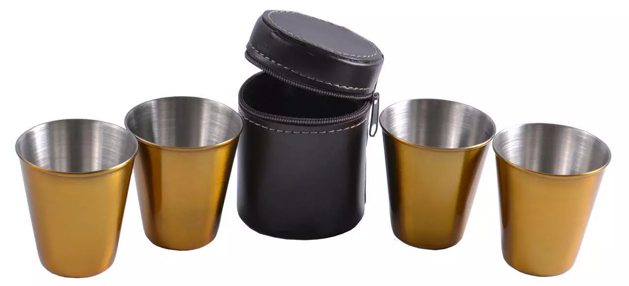 Рюмки из нержавеющей стали в кожаном чехле (Золото, 4 шт) PQ-01
