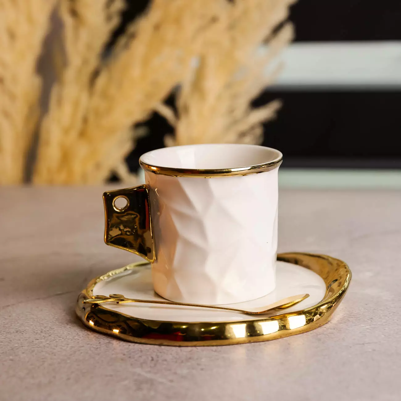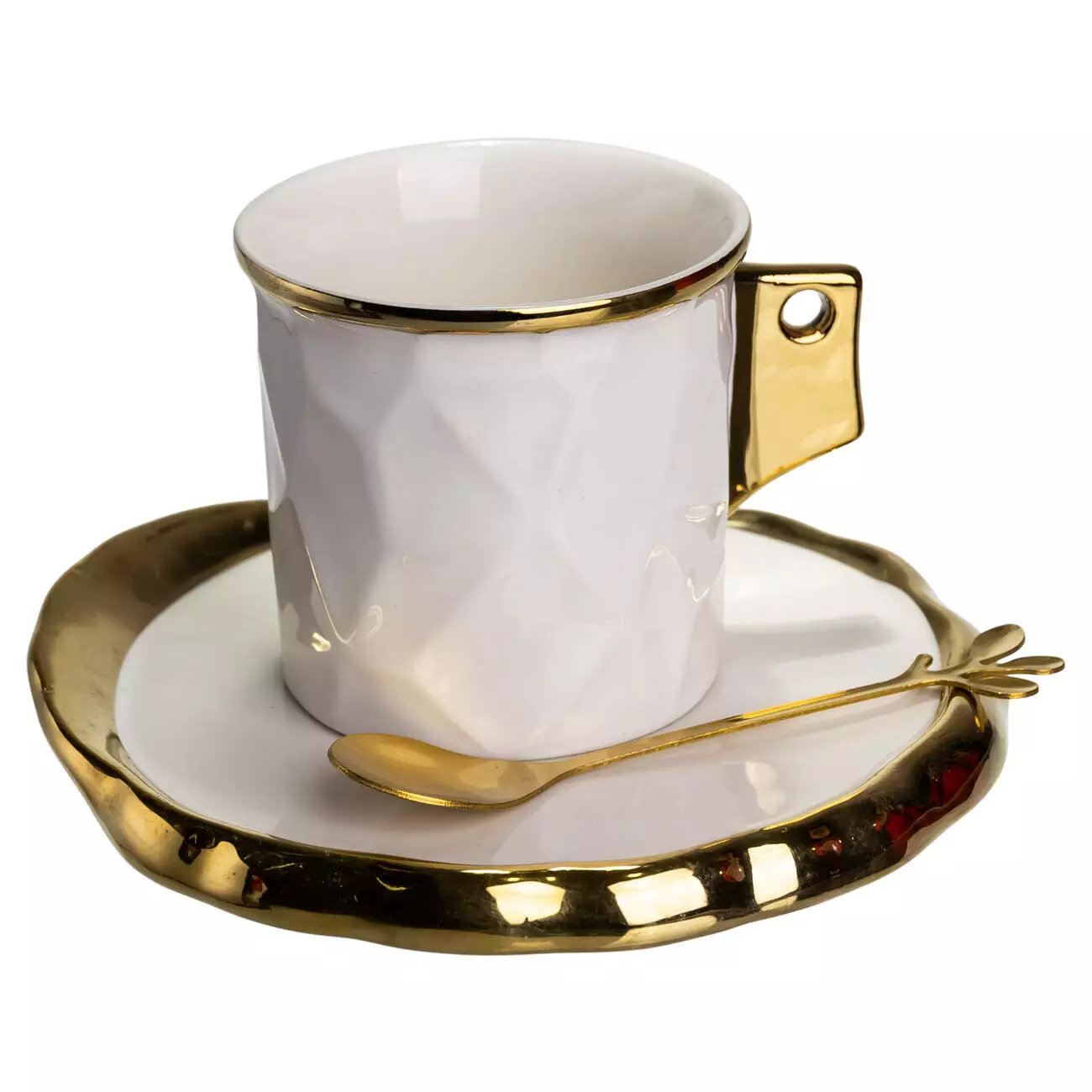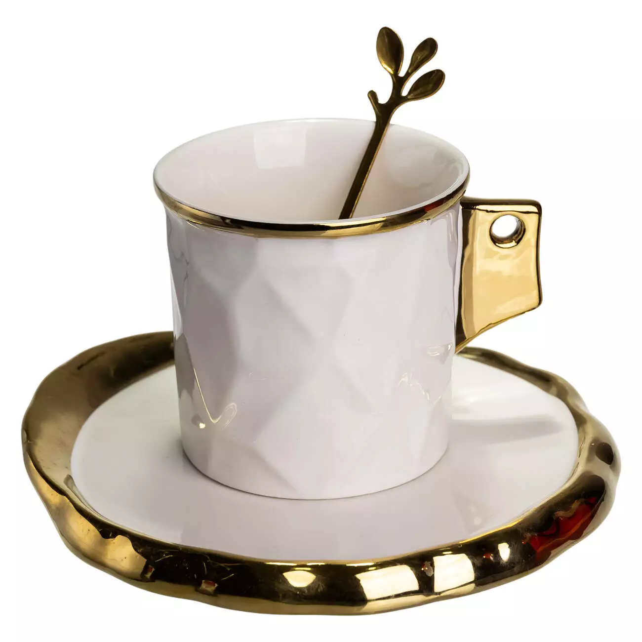 Чашка для кави порцелянова 200 мл з блюдцем та ложкою, білий