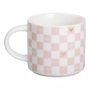 Чашка порцелянова 350 мл, білий з рожевим