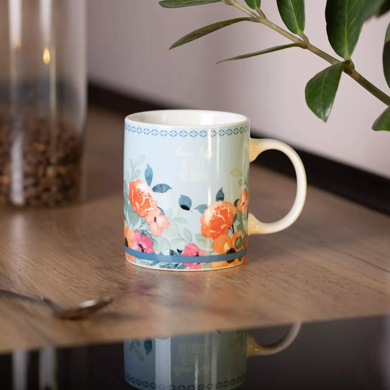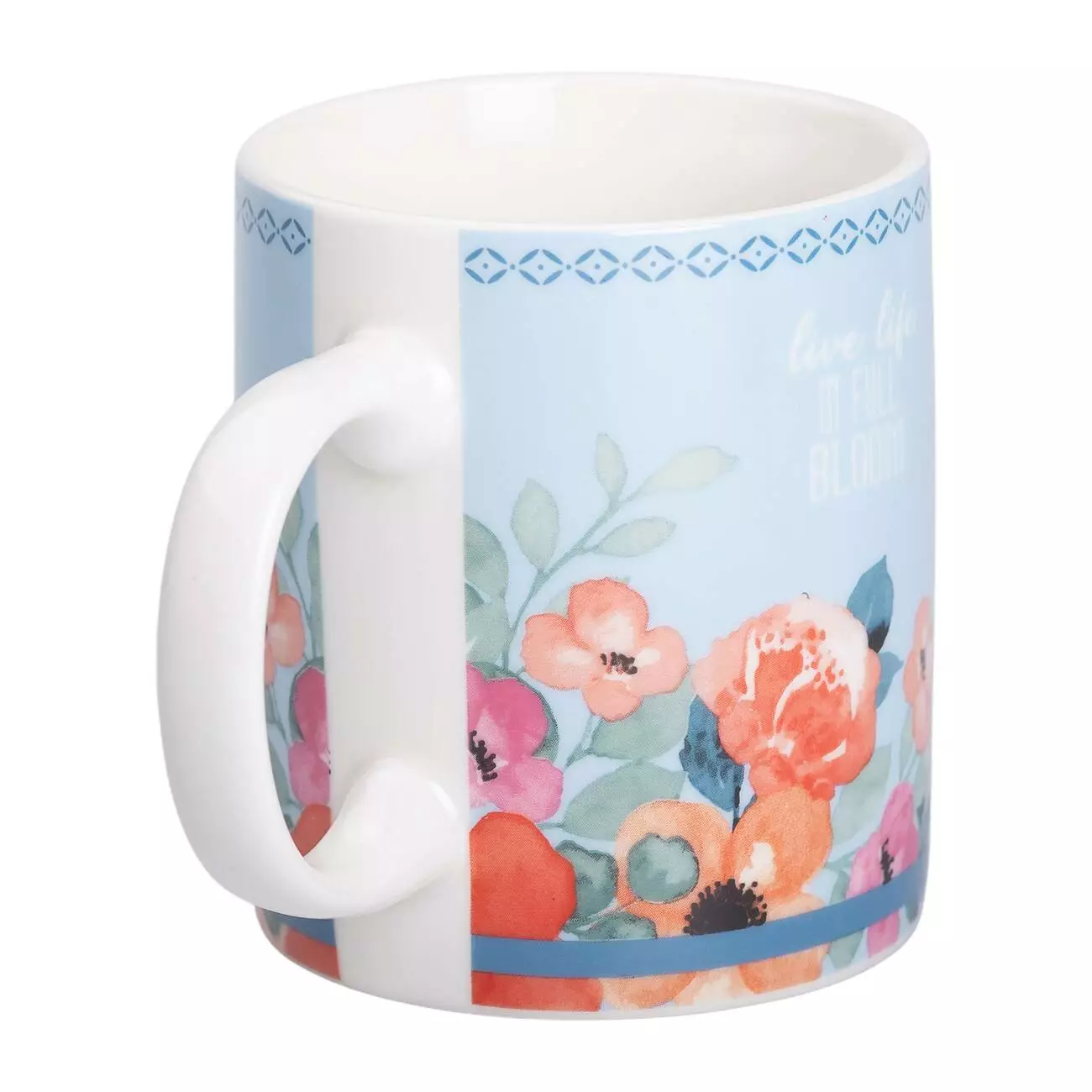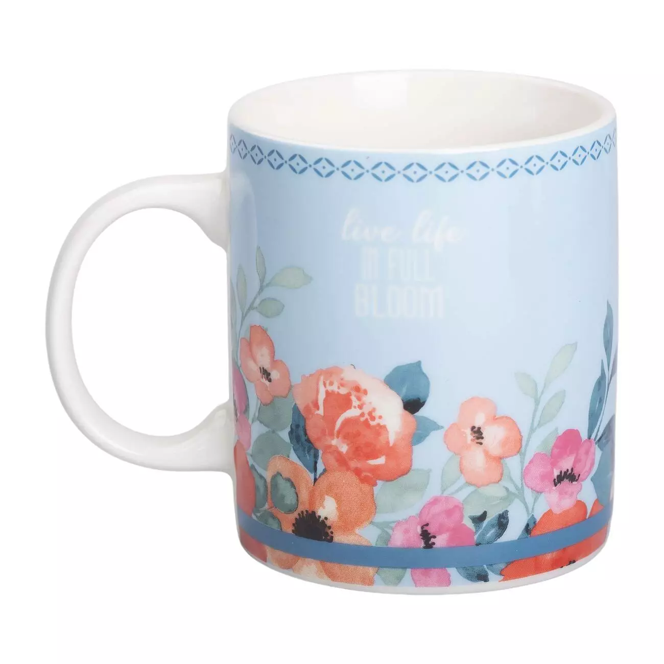 Чашка порцелянова 400 мл із квітковим принтом, блакитний
