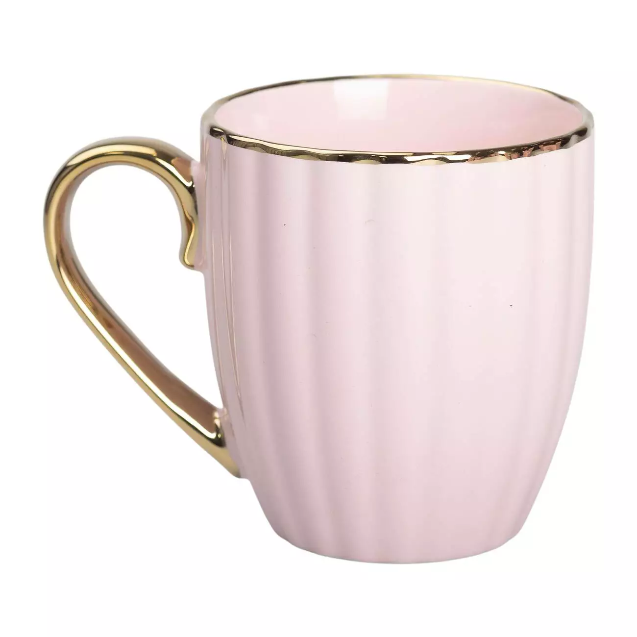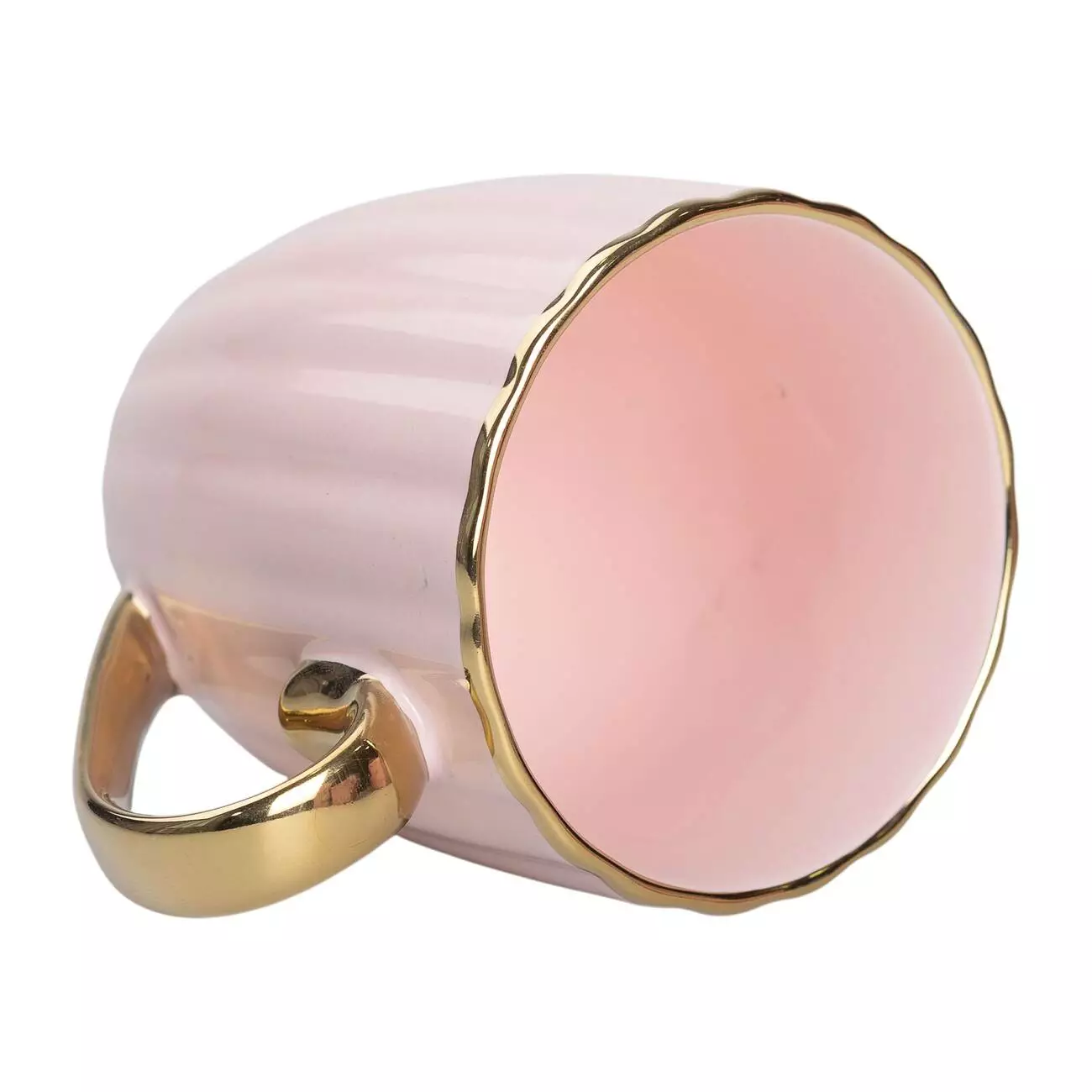 Чашка порцелянова 420 мл із золотою ручкою, рожевий
