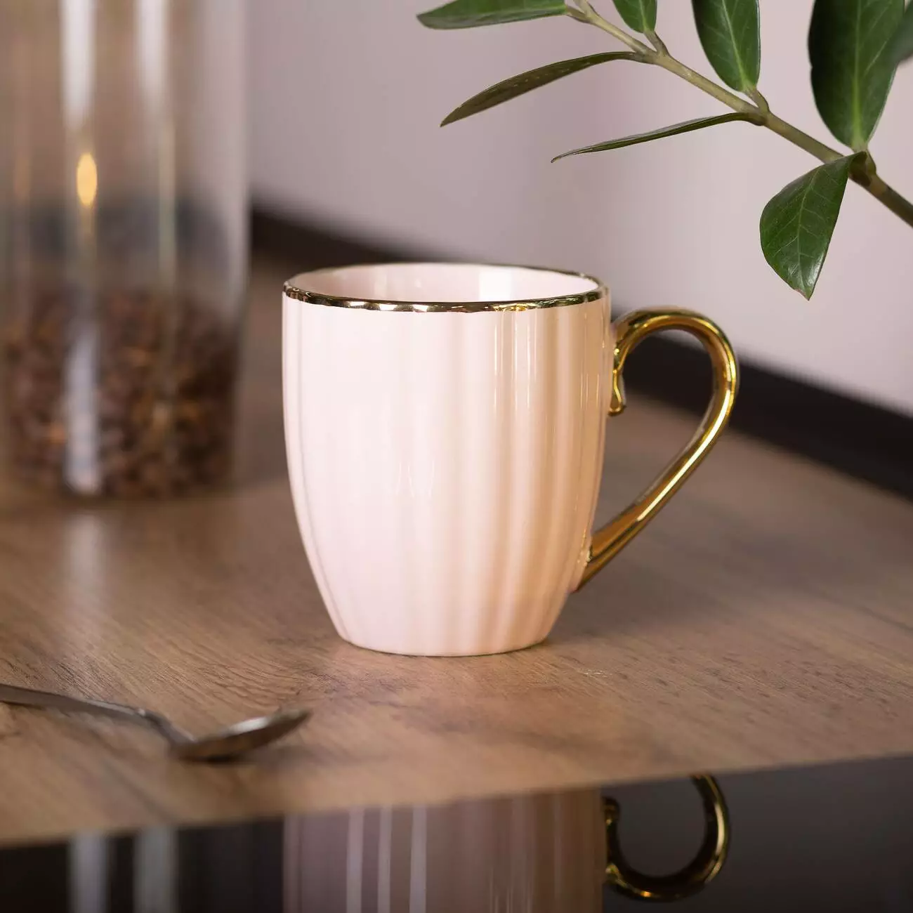 Ручка та ободок чашки прикрашені золотистим покриттям, що надає їй елегантності. Це робить її гарним вибором для різних інтер'єрів та особливих моментів. Варто враховувати, що чашку не можна використовувати в мікрохвильовій печі.