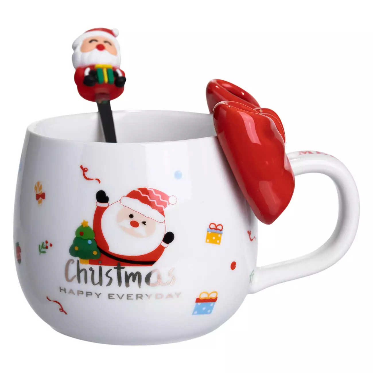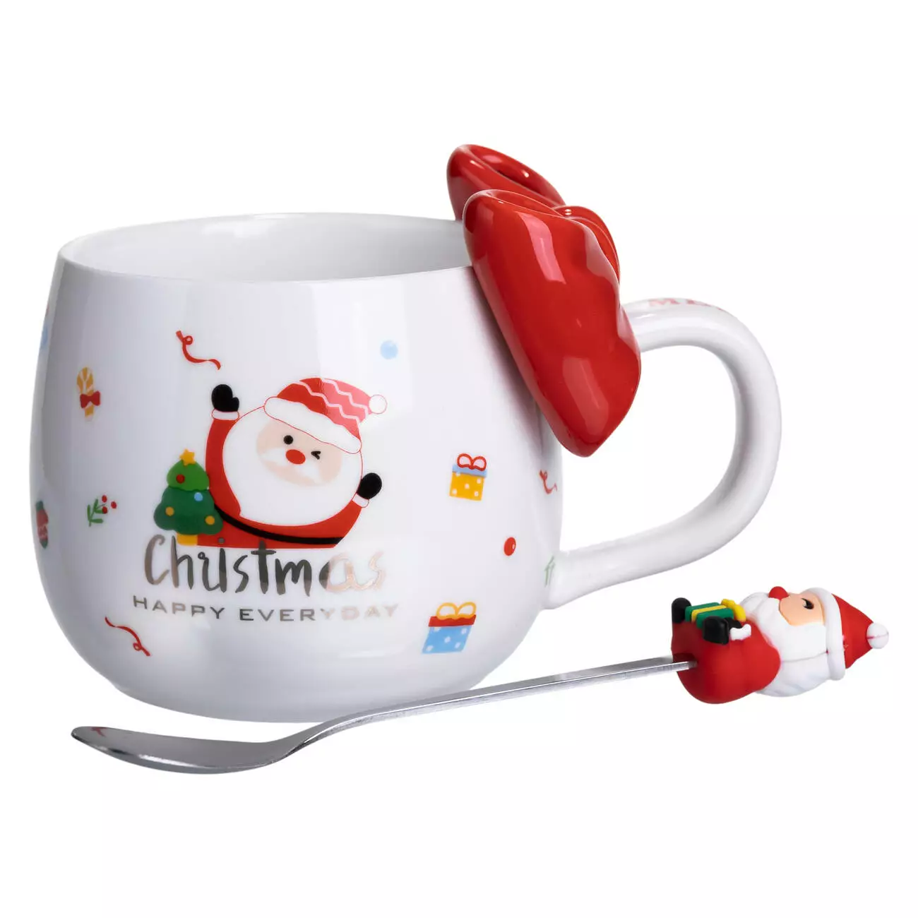 Home > Catalog > Dishes > Cups > Чашка порцелянова Christmas Ribbon 400 мл з ложкою, червоний wholesale