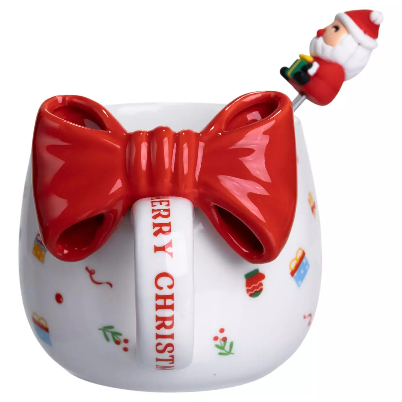 Чашка порцелянова Christmas Ribbon 400 мл з ложкою, червоний
