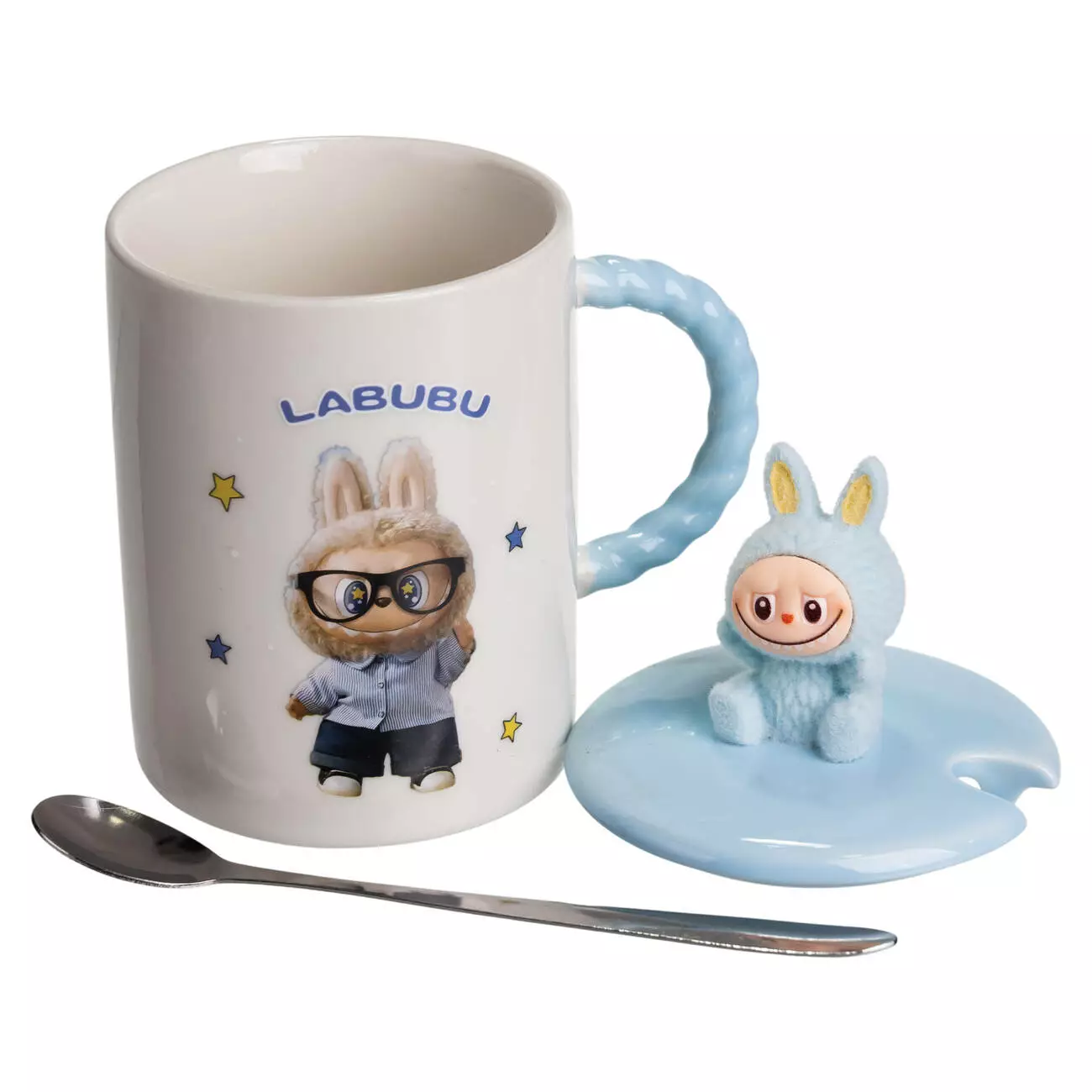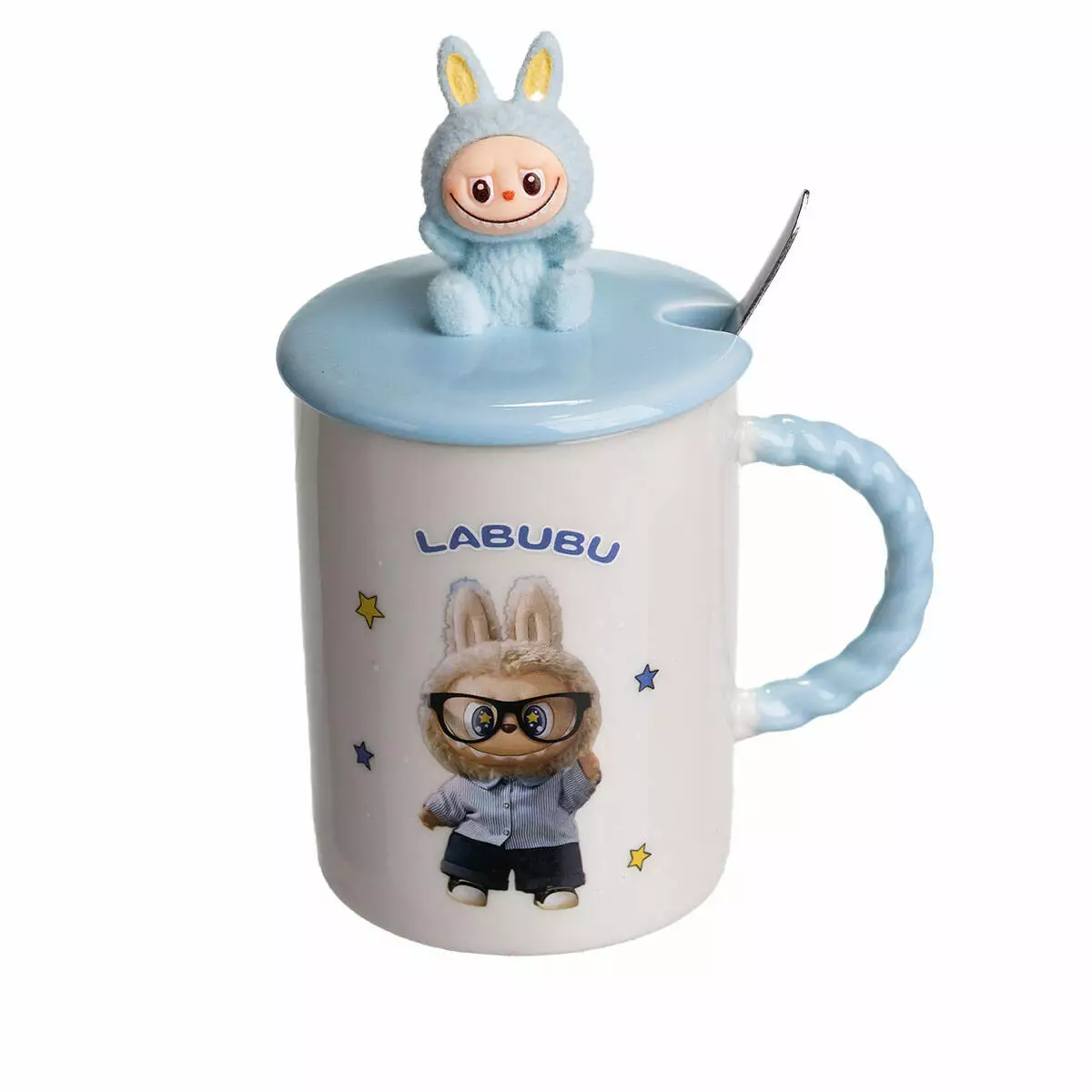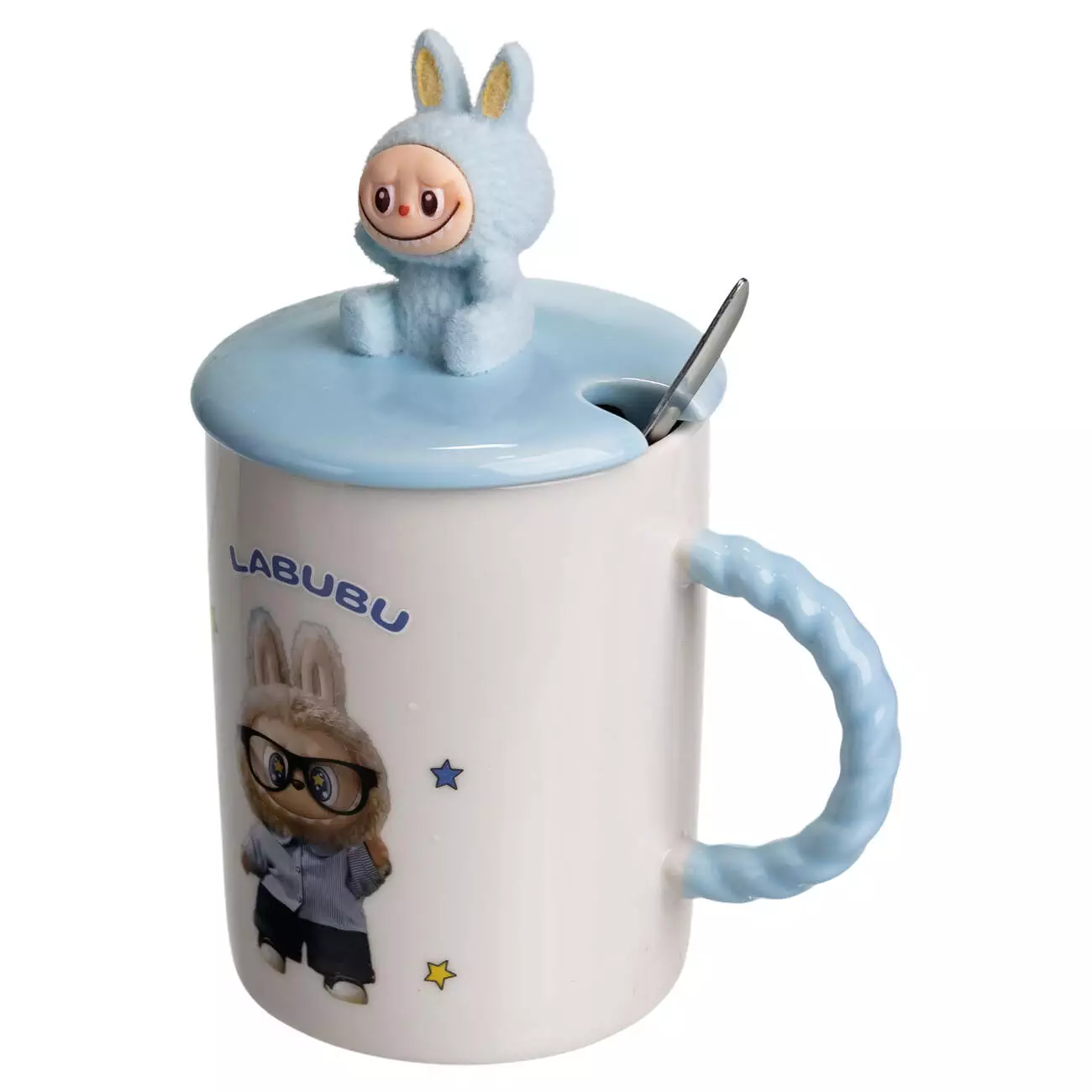 Чашка порцелянова Labubu 300 мл з кришкою і ложкою, блакитний