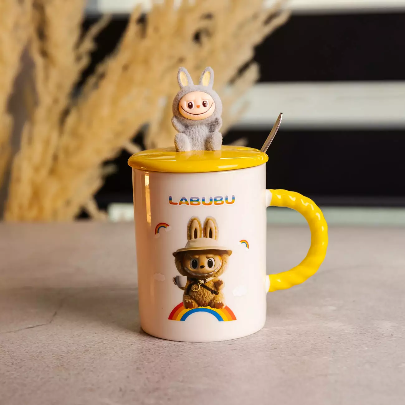Дизайн прикрашено зображенням персонажа Labubu — деталь, яка надає чашці впізнаваного вигляду та робить її приємним подарунком для колекціонерів або поціновувачів оригінального посуду. На верхній частині кришки розташована декоративна фігурка Labubu. Завдяки висоті 15 см та діаметру 7,5 см, чашка має оптимальні пропорції для гарячих і холодних напоїв, а вага 400 г забезпечує стабільність на поверхні.