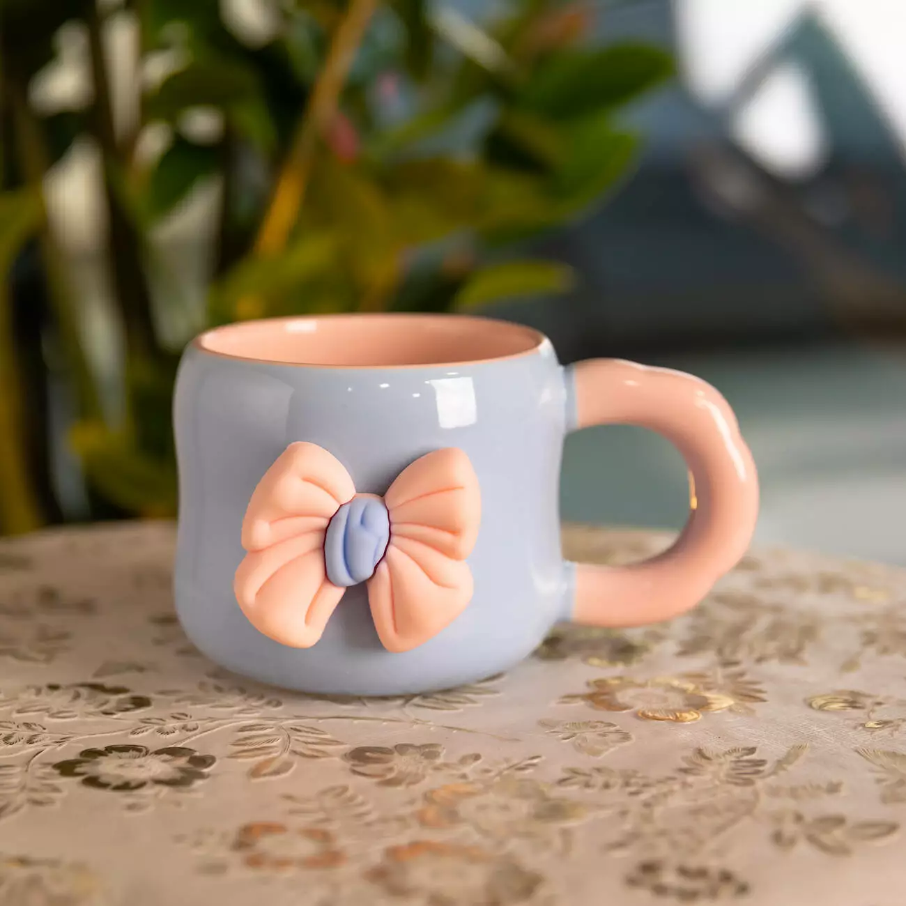 Порцелянова чашка об’ємом 400 мл поєднує естетику й практичність у повсякденному використанні. Вона має знімний декоративний магнітний елемент у формі банта, який кріпиться до зовнішньої поверхні. Така деталь дозволяє легко змінювати вигляд чашки — від стриманого до більш виразного, залежно від настрою чи події. Бант виконаний у рельєфному стилі, з чітко проробленими об’ємними лініями, що створюють акуратний візуальний акцент.