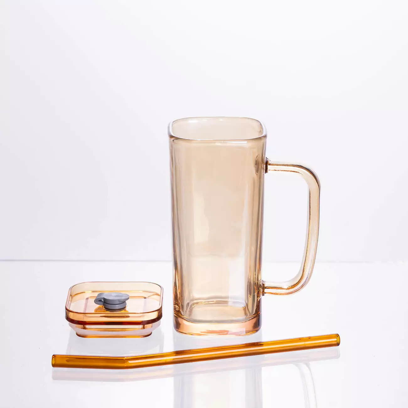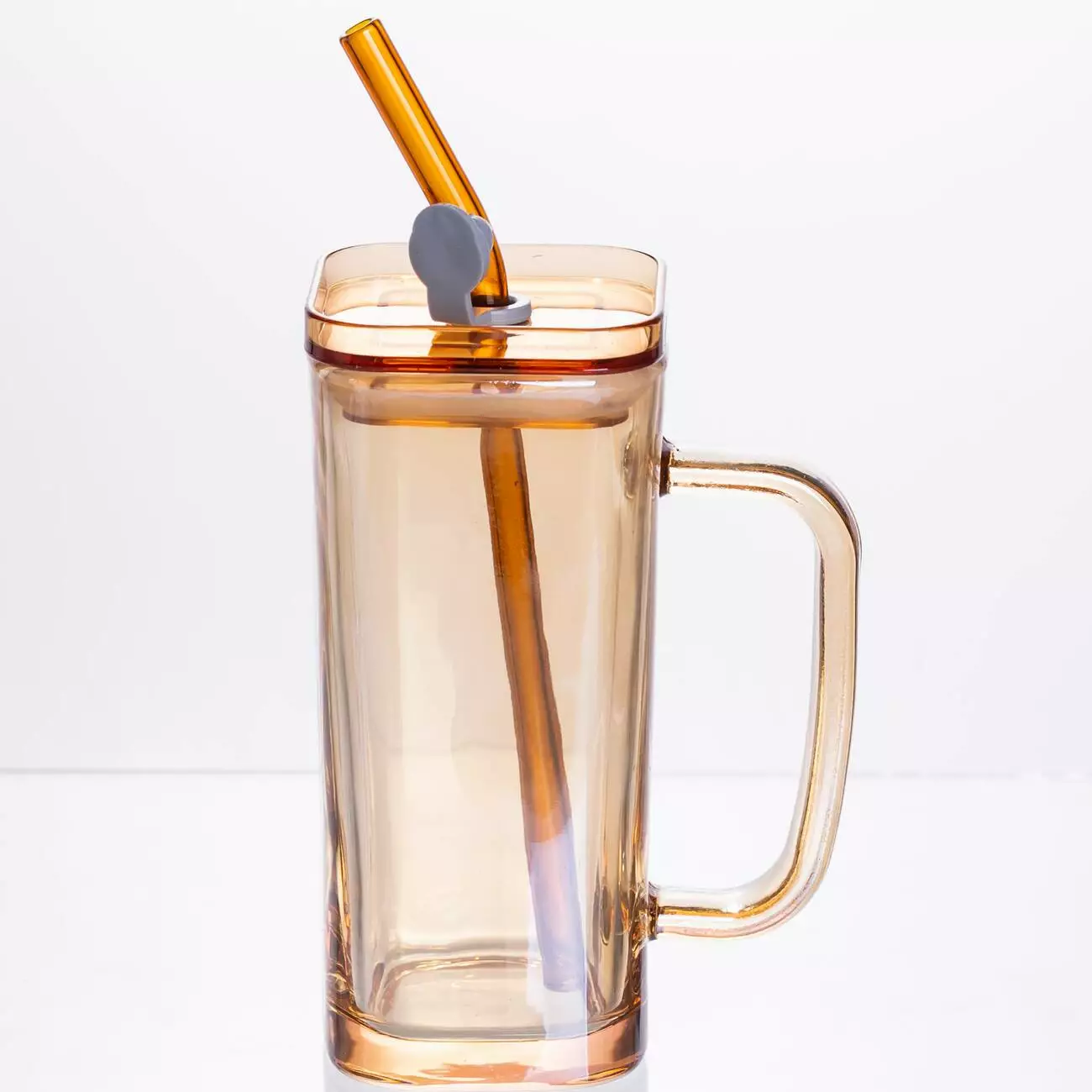 Скляна кружка з трубочкою та кришкою поєднує стиль та практичність. Чашка і соломинка виконані з міцного скла, що не вбирає запахи і легко миється. Пластикова кришка оснащена силіконовим ущільнювачем для щільного прилягання та зручним клапаном, який закриває отвір для трубочки і захищає від проливання. Такий аксесуар підходить для гарячих та холодних напоїв, а ергономічна ручка робить використання особливо комфортним.