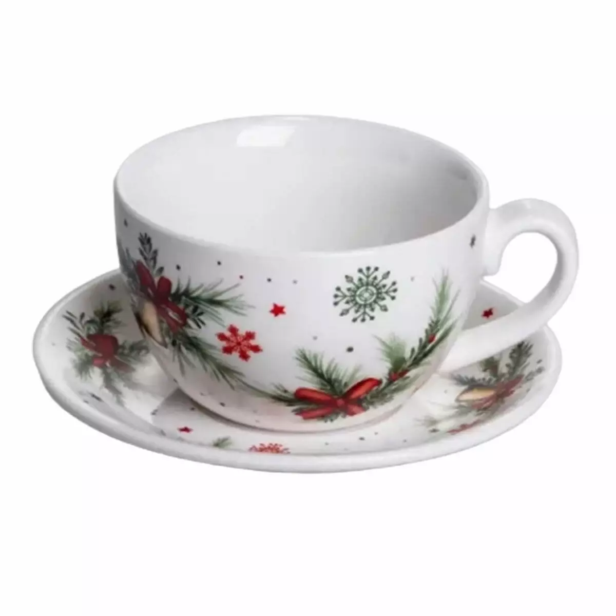 Порцелянова чашка з блюдцем Christmas Tree — це святковий набір для подачі гарячих напоїв, який створює атмосферу затишку зимовими вечорами. Об’єм чашки 300 мл дозволяє насолоджуватися кавою, чаєм або какао, а зручна форма забезпечує комфортне тримання. Декор із новорічним мотивом — ялинки та сніжинки — додає набору особливого шарму, роблячи його доречним як для сімейних посиденьок, так і для святкового сервірування.